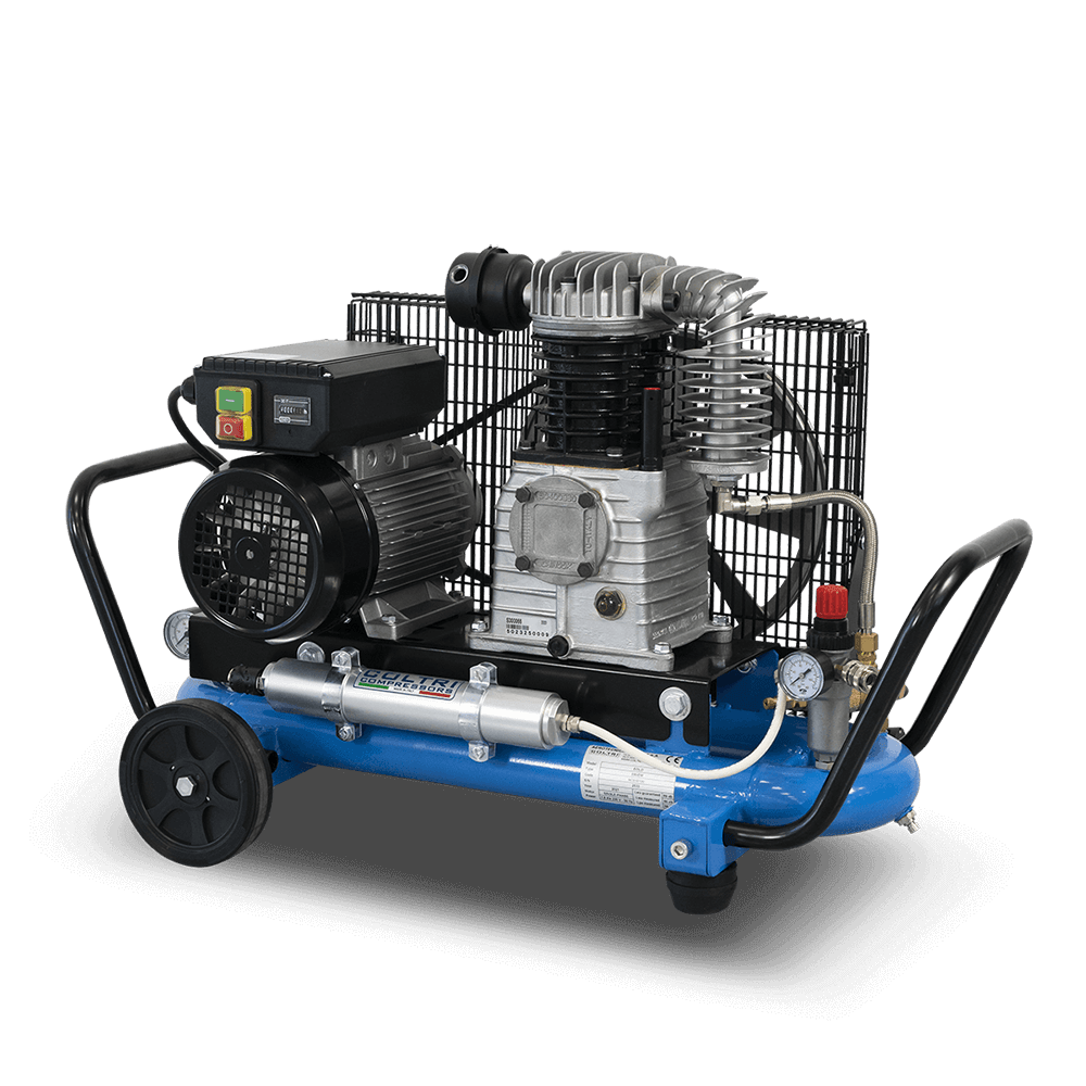 Designed for maximum mobility, the Tankless Line delivers breathable low-pressure air in a compact and durable package. These compressors offer a smart balance of convenience and performance, ideal when low weight and easy handling matter most. Every unit includes a breathing-air filter and a 6-liter tank.