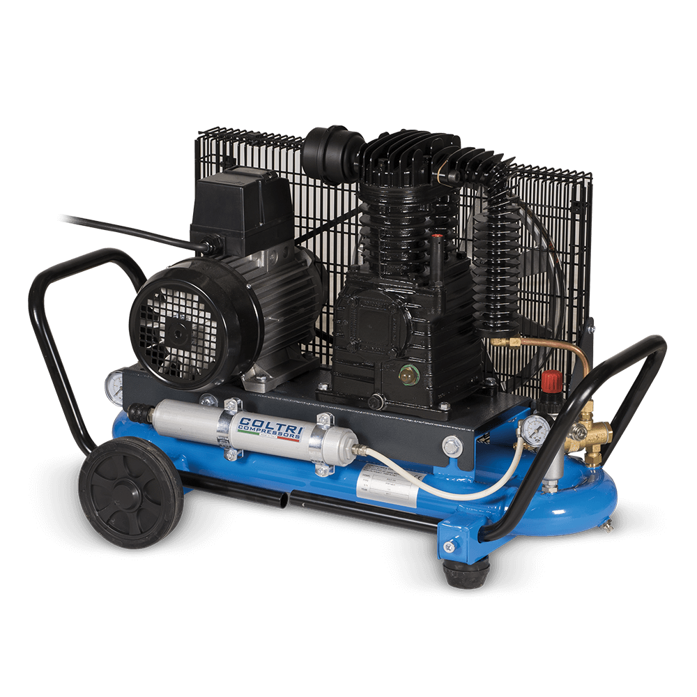 Breathing-air compressors you can bring anywhere.Equipped with the MCH 6 pump, Coltri’s portable models combine efficiency with ease of use. Producing 100 l/min, they can refill a tank in roughly 20 minutes. Their lightweight build, choice of electric or gasoline power, and stainless-steel structure make them both practical and long-lasting.