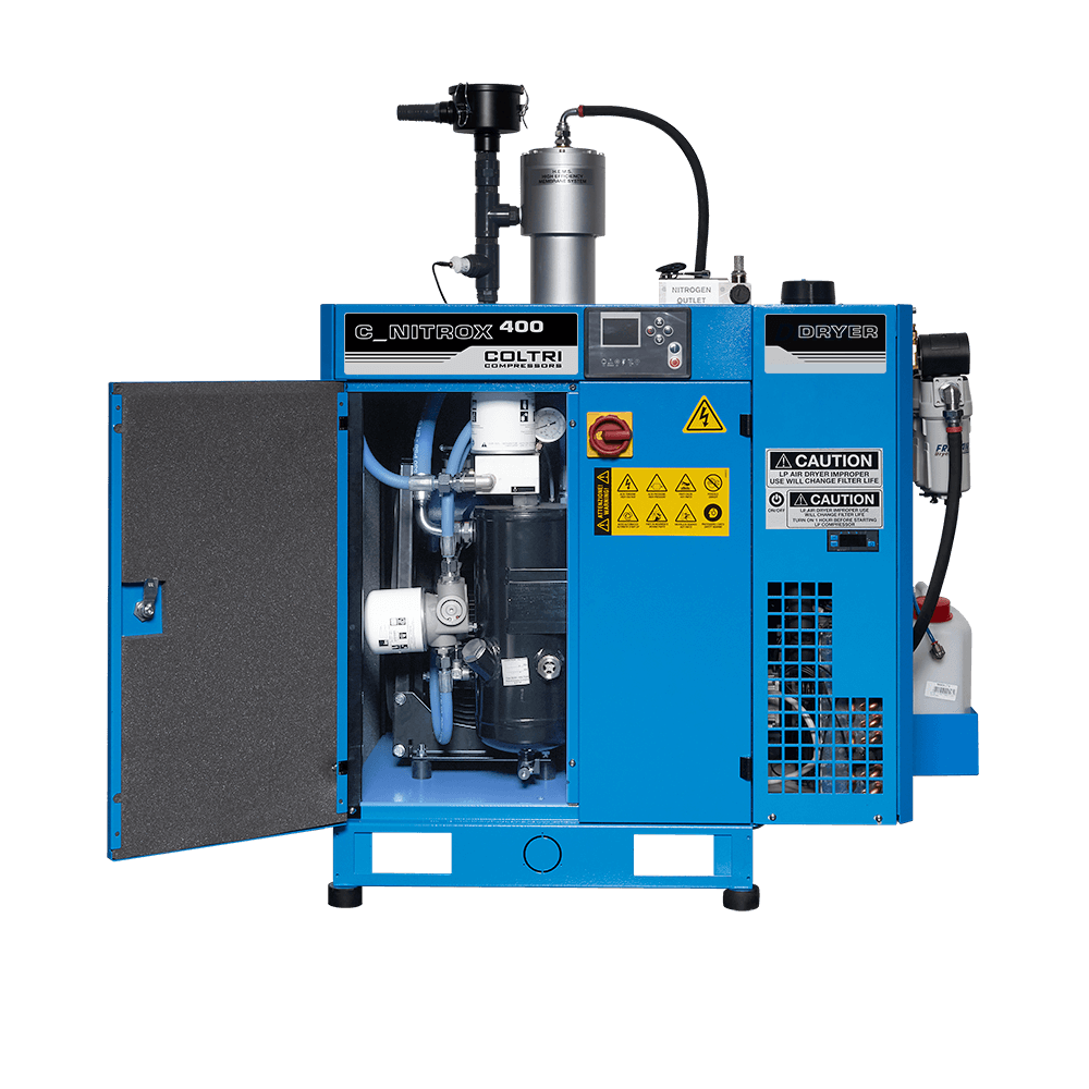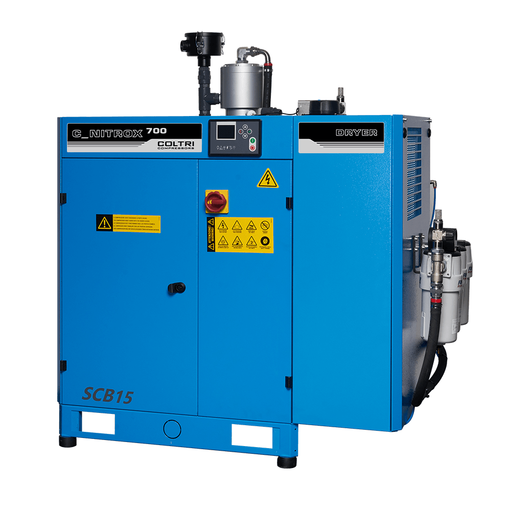 Nitrox Line screw compressors generate low-pressure air with oxygen levels of up to 40%. They are easy to operate, safe, and adaptable to different uses. When used alongside a high-pressure breathing-air unit, they ensure a continuous and reliable flow of Nitrox.