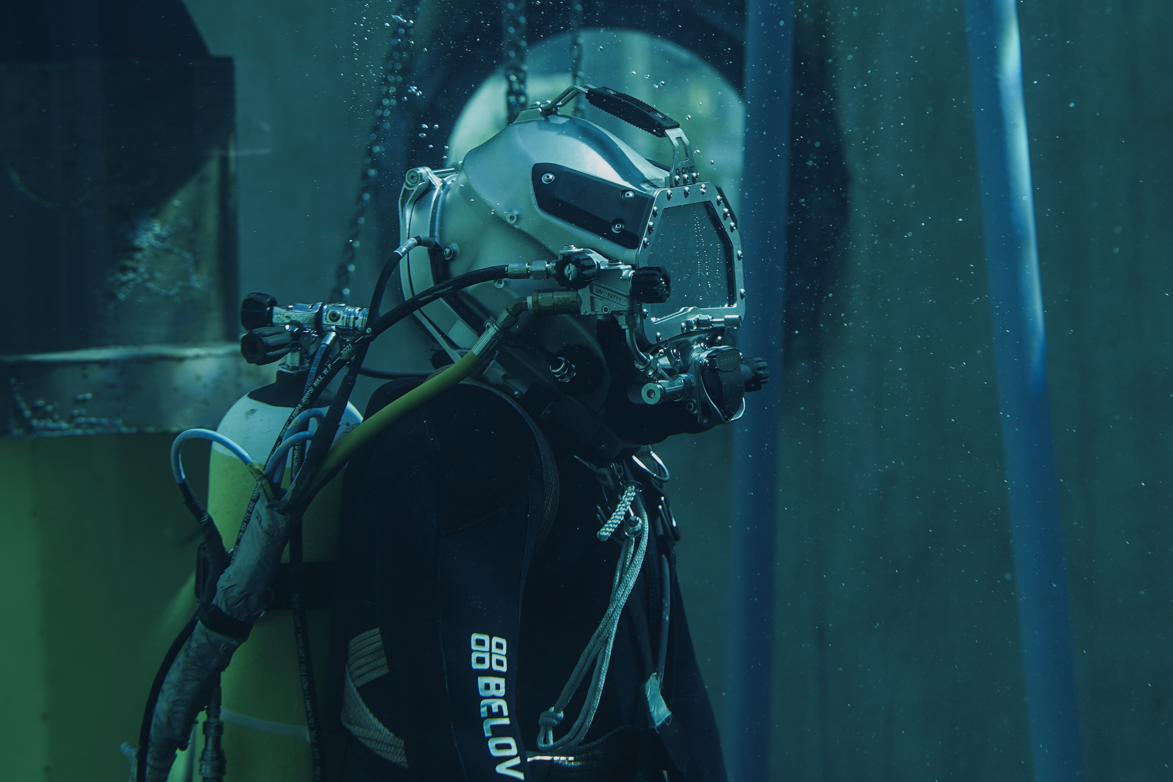 The D-ONE helmet is designed for diving operations where reliability, communication, and diver protection are critical. Its rigid construction and integrated communications support long-duration dives in demanding underwater environments.