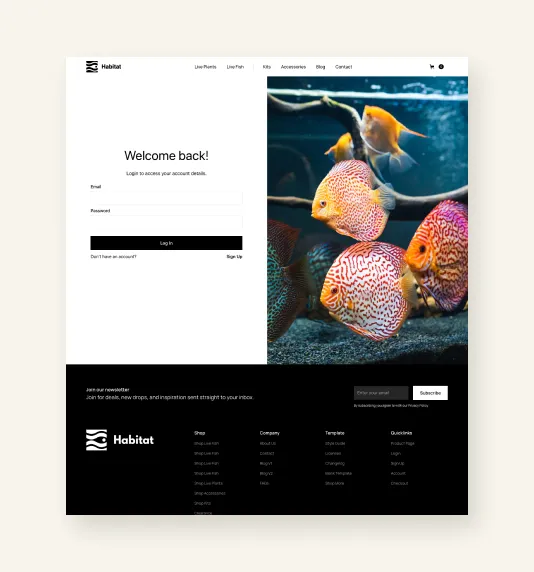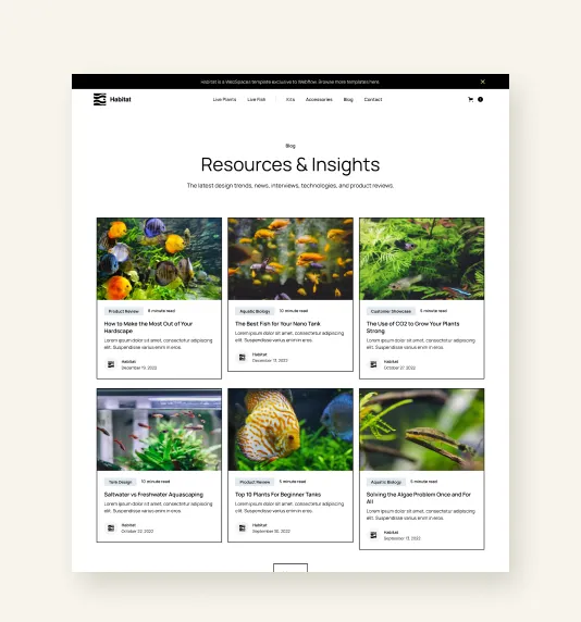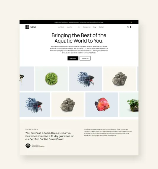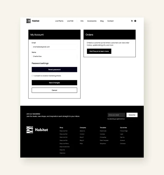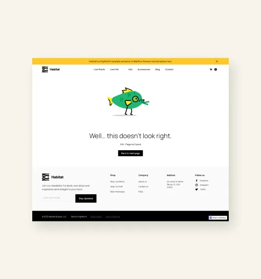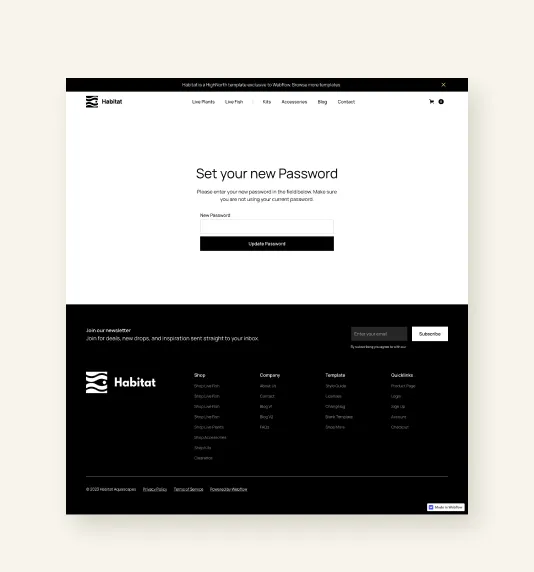 Habitat comes out of the box with all the pages that you need when you build a full scale ecommerce store within Webflow.